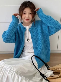 Koreanische lässige einfarbige Pullover Mantel Damen Herbst Winter New Neck All-Match Strick Cardigan Top