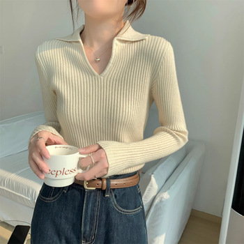 Suéter de cuello alto ajustado de estilo coreano para mujer, Jersey versátil de punto, Top para otoño e invierno, ropa exterior con logotipo frontal