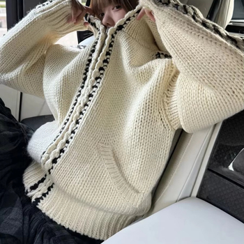 Openy Vintage Jacquard Jacquard Capuchon Dames Trui Nieuwe Herfst En Winter Wollen Gebreide Top Casual Stijl