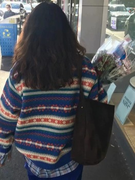 Coreano Geométrica Retro Estilo Artístico Contraste Cor Preguiçoso Jacquard Anti-Pilling Pullover Camisola Outono Inverno Solto das Mulheres